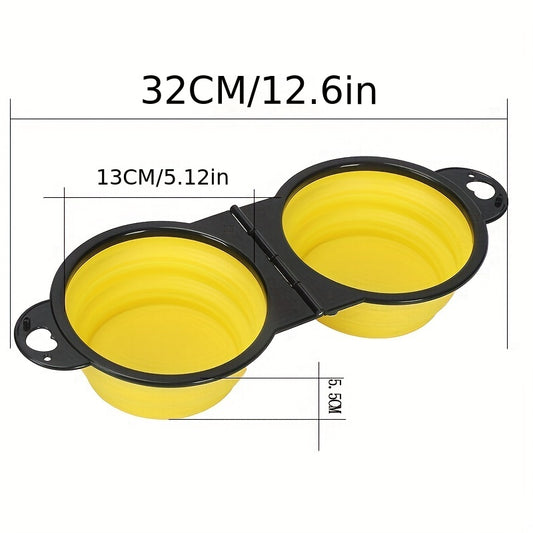 Hopfällbara silikonskålar för hundar, 2 i 1 dubbla skålar, hopfällbar TPE-matskål för hundar, vattenskål, hängbar matskål för hundar, för utomhuspromenader, camping, resor